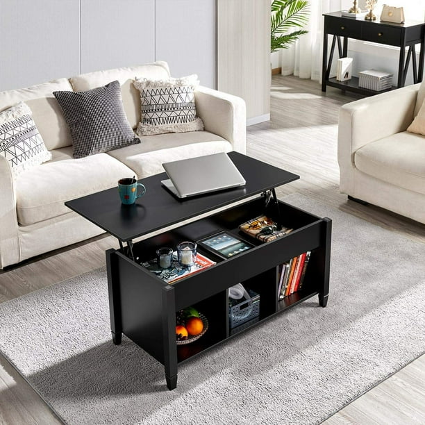 Zimtown Lift Top Coffee Table With Hidden Compartment Wooden Modern Multifunctional Coffee Table Furniture Black Walmart Com