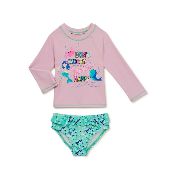 Shelloha Baby And Toddler Girls Long Sleeve Rash Guar And Bikini Bottoms Set With Upf 50 2 Piece Walmart Com