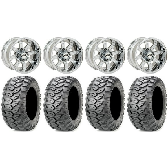 4 Golf Cart 12 X7 Chrome Terminator Wheels Rims And 18 All Terrain Tires Ebay